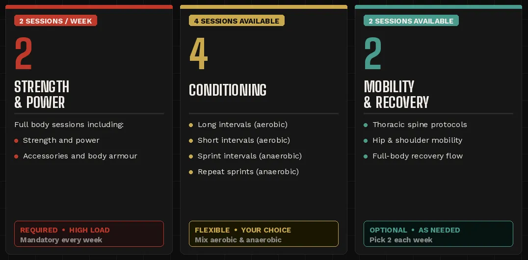 Optional Machine-Based Conditioning Or HIIT Circuits To Top Up Your Gas Tank